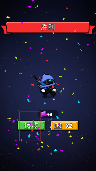 4、完成挑战后显示胜利界面,出现彩色装饰效果,点击接收按钮,获取对应的道具奖励,结束本次挑战。