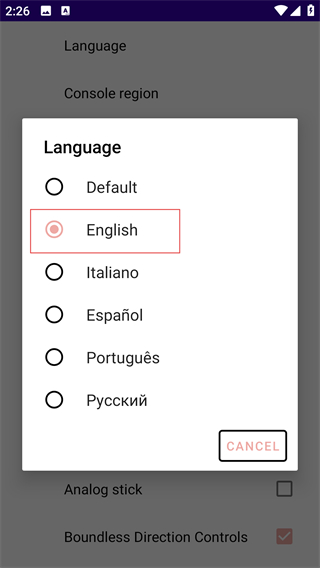 3、选择Language设置中的English选项,将模拟器的语言切换为英文,完成语言配置的调整。