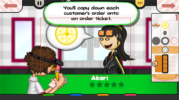 2、接待顾客Akari,把她的订单需求记录到order ticket上,明确派的制作要求,为后续制作做准备。