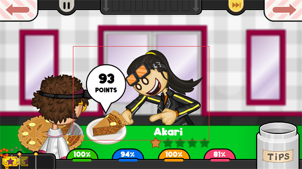 4、将做好的派递给Akari,查看获得的93POINTS评分,了解各环节的完成情况,获取顾客的反馈。