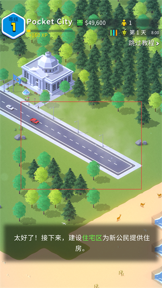 4、等待道路建设完成后,按照提示准备建设住宅区,为即将到来的新公民提供居住的场所。