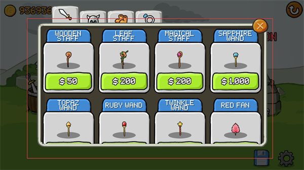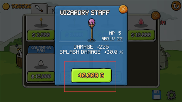3、点击武器详情弹窗里的按钮,消耗对应金币购买WIZARDRY STAFF,获得该武器的属性加成效果。
