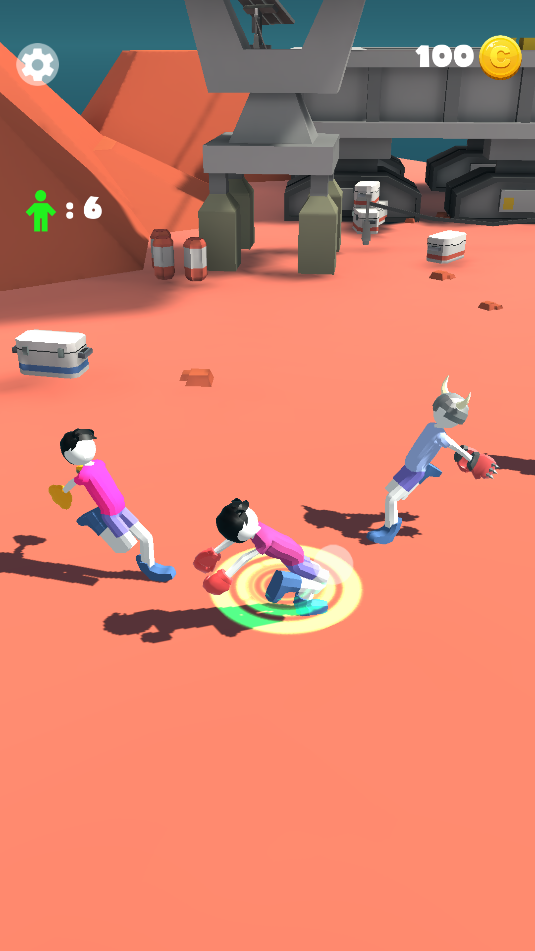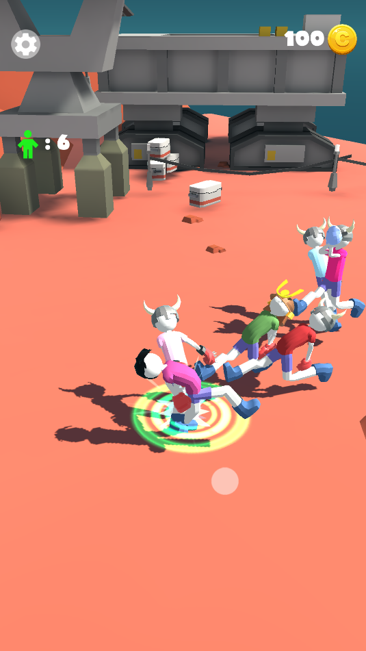 2、游戏中,滑动屏幕移动控制角色,与场中的其他选手相撞互殴。