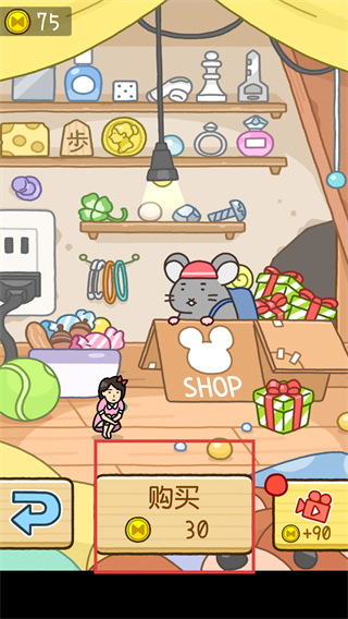 1、点击购买按钮消耗金币,在老鼠的SHOP中完成兑换,获取对应的道具,为后续装扮解锁做准备。