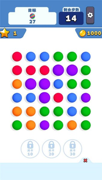 2、用手指在屏幕上横向或竖向滑动,连接三个及以上相邻同色球球即可完成消除,注意连线不可交叉。