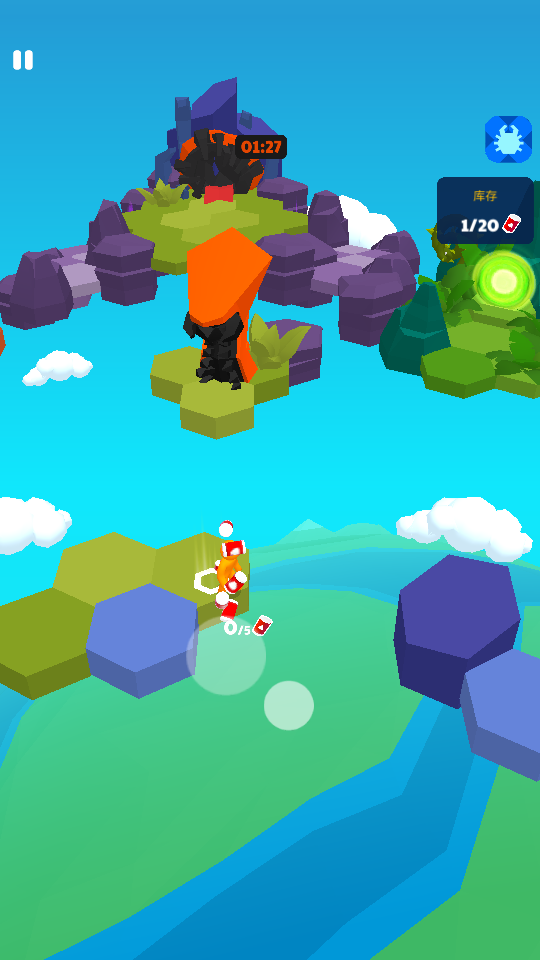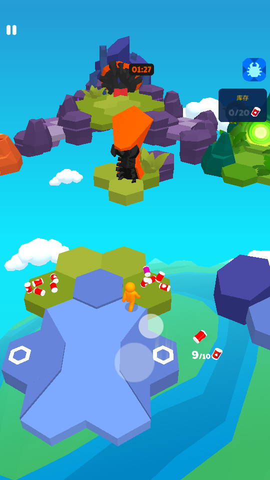2、角色可在不同地块间移动,移动过程中继续收集道具,右上角会显示库存数量,方便掌握收集情况。