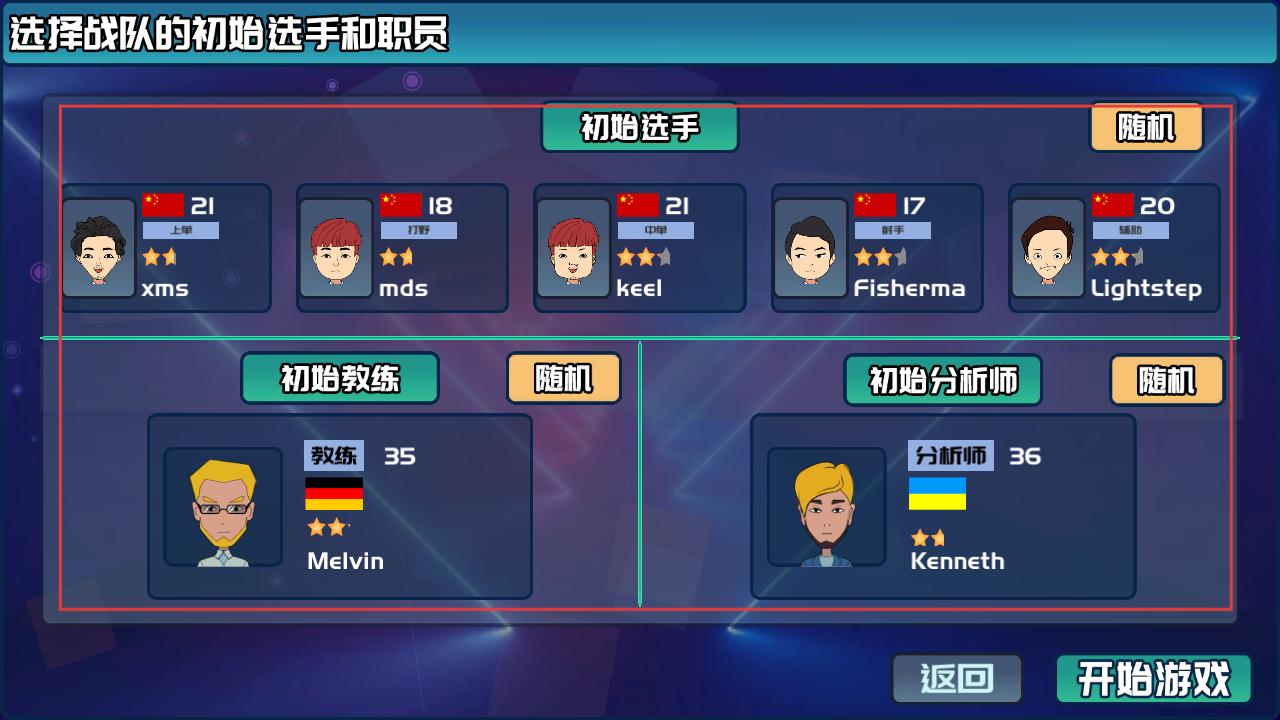 2、首先选择战队的初始选手、教练和分析师,为战队组建核心团队,奠定发展基础。