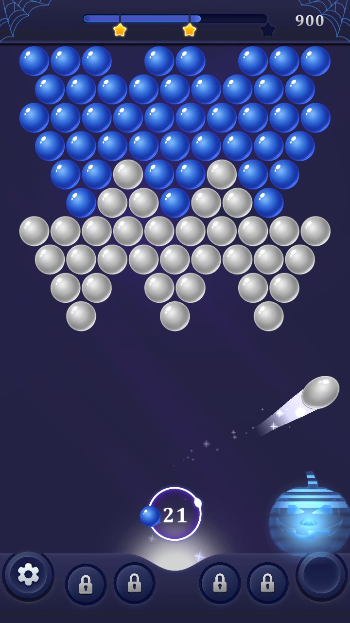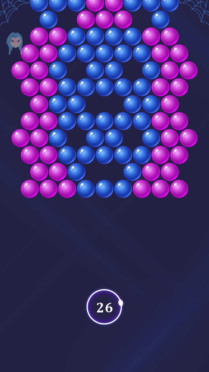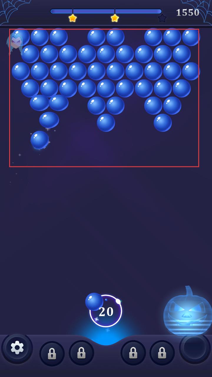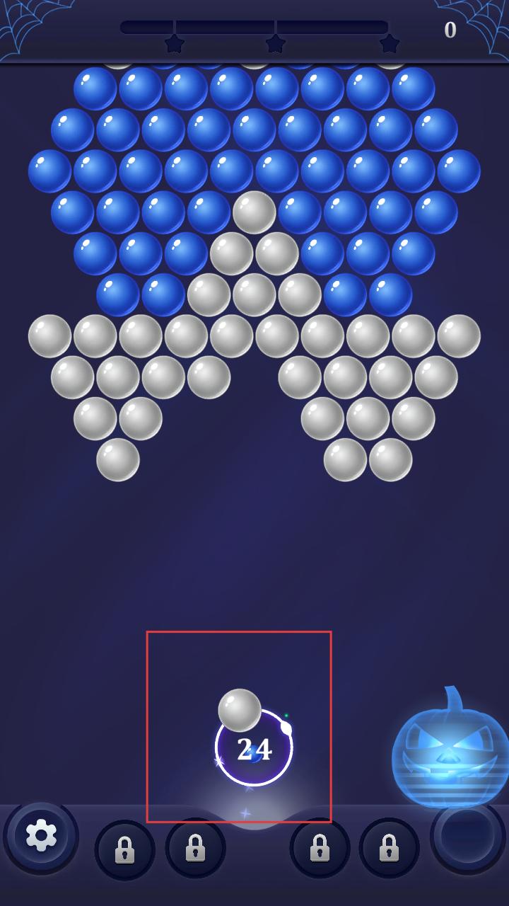2、游戏中操控发射白色泡泡,瞄准上方相同颜色的泡泡区域,发射后尝试让同色泡泡聚集,触发消除效果。