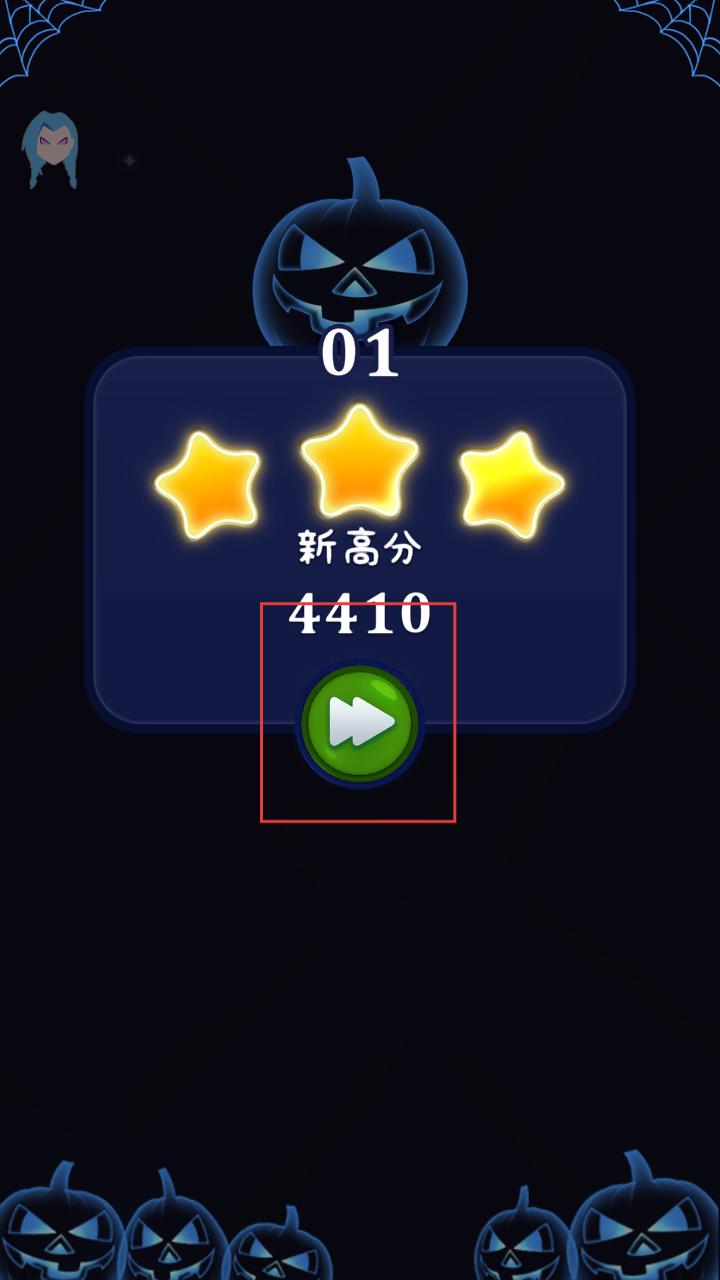 4、完成关卡后,会出现显示星级和新高分的界面,点击绿色箭头按钮,可继续挑战下一关,争取更好成绩。
