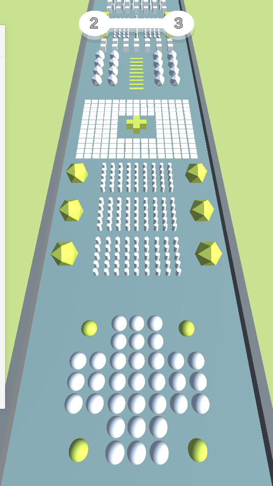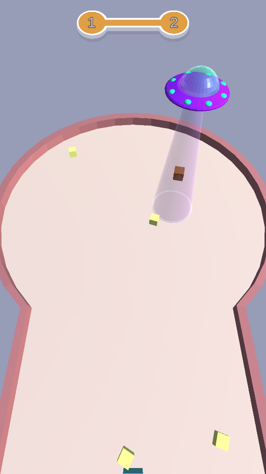 1、游戏中,滑动屏幕控制飞碟移动,用飞碟吸收道路上的白色物体,但不能吸收青色方块。