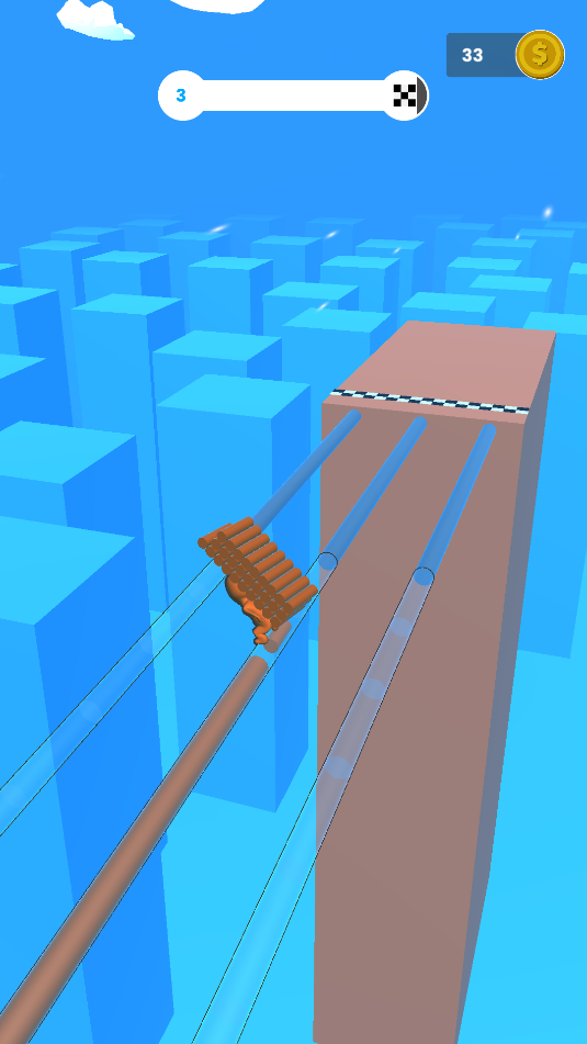 2、向右滑动屏幕,控制小人收集竹筒用来铺路。