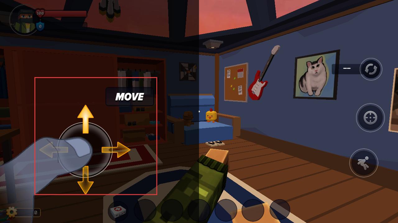 2、在室内场景中通过左下角的移动摇杆控制角色移动,可在房间内探索,准备迎接僵尸的袭击。