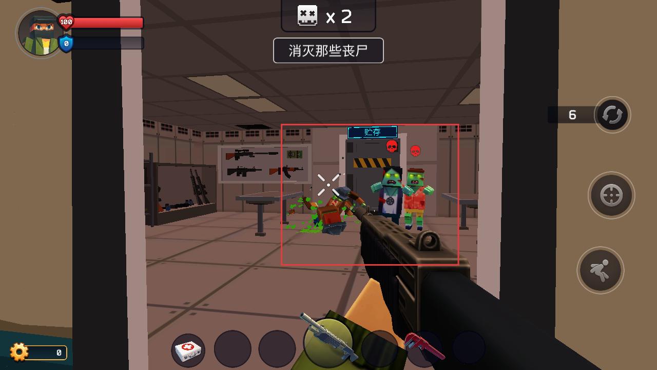 3、遇到僵尸时,使用枪械瞄准射击,消灭那些丧尸,同时注意自身血量,在战斗中存活下来。