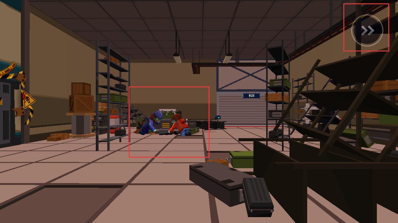 4、在仓库等场景中会遇到其他敌人,消灭他们后可继续探索,界面右上角的按钮可用于切换场景或进行其他操作。