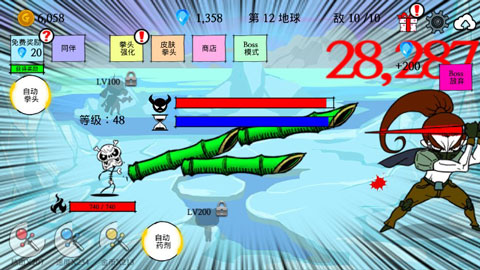1、融入自动战斗功能,支持免费开启自动点击,搭配药水可实现最高速攻击解放手指。
