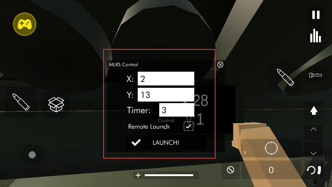 3、针对MLRS等武器,在控制界面设置坐标、发射时间等参数,勾选远程发射选项后,点击LAUNCH执行发射操作。