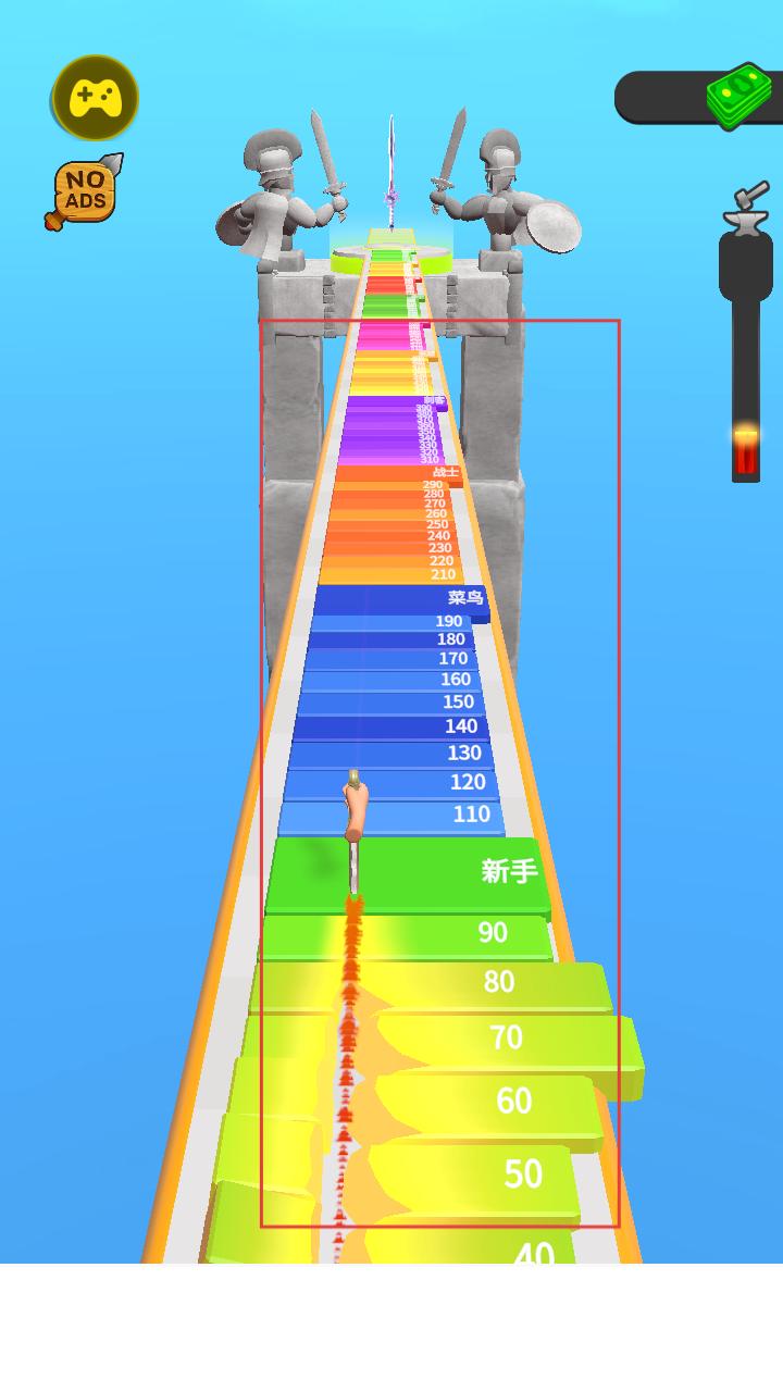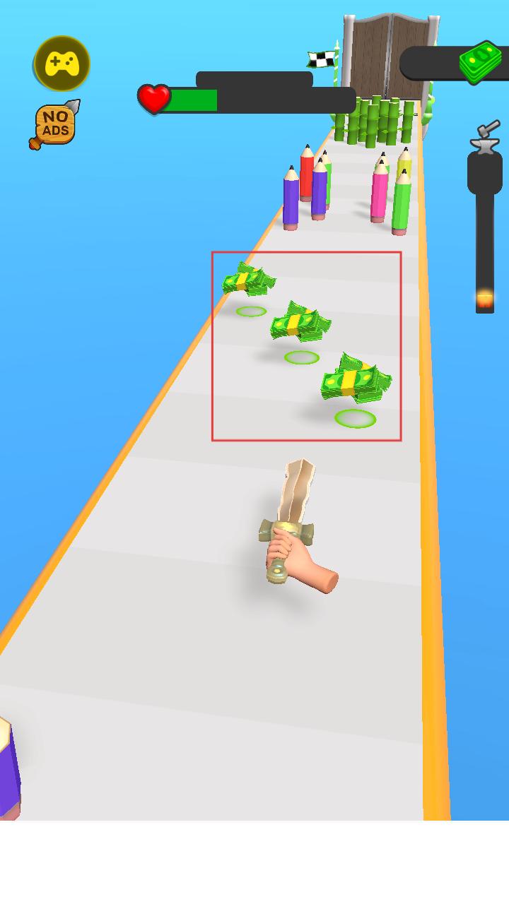 2、在跑道上收集绿色金币,积累资源用于后续武器锻造与升级,每收集一份金币都能为打造更强武器添砖加瓦。