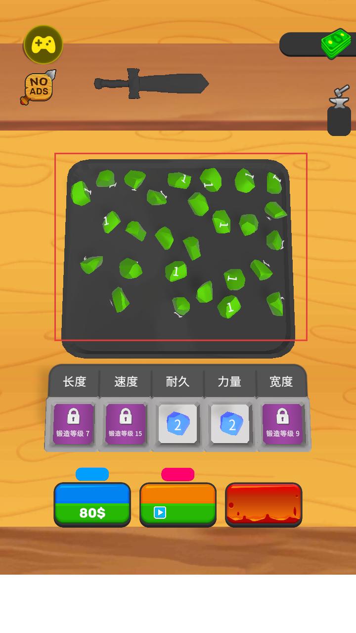 1、在锻造界面收集绿色材料,这些材料可用于升级武器的耐久、力量等属性,为打造更强武器提供基础资源。