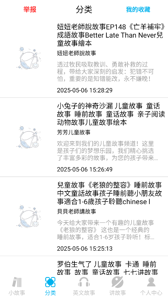 1、故事内容丰富多元:涵盖经典童话、民间传说、成长寓言等多种类型,按年龄与主题分类,满足不同场景需求。