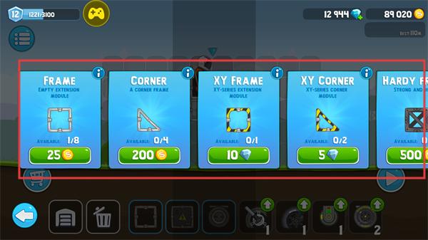 1、可花费金币或钻石解锁FRAME、CORNER等多种部件,超200种可升级零件为赛车DIY和部件改装提供丰富选择,助力打造专属竞速战车。