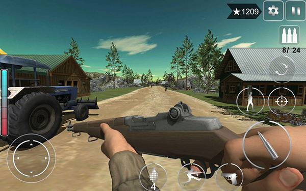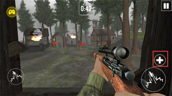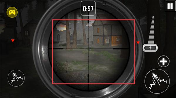 1、进入二战战场,以第一人称狙击视角在树林村庄场景作战,利用放大功能瞄准远处敌人,在限时内完成任务,体验高度还原的诺曼底登陆等历史战场氛围。