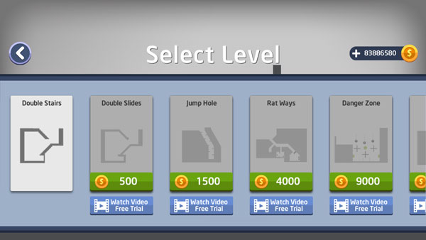 1、进入游戏后,选择关卡,这些关卡都是可以通过金币购买的。