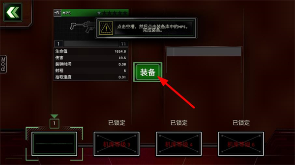 3、在装备界面,点击空槽再点击MP5旁的装备按钮,完成装备武器操作,提升部队装备水平。