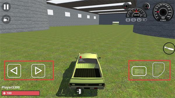 4、驾驶车辆时,通过左侧方向按钮和右侧油门刹车按钮操控车辆行驶,在沙盒世界的道路上自由驾驶,体验城市交通的模拟乐趣。