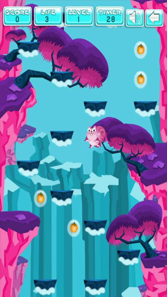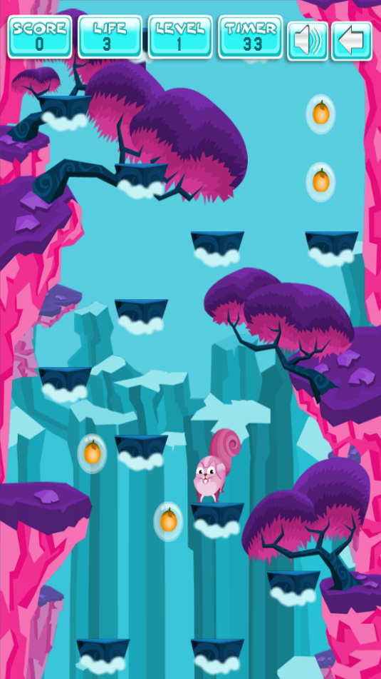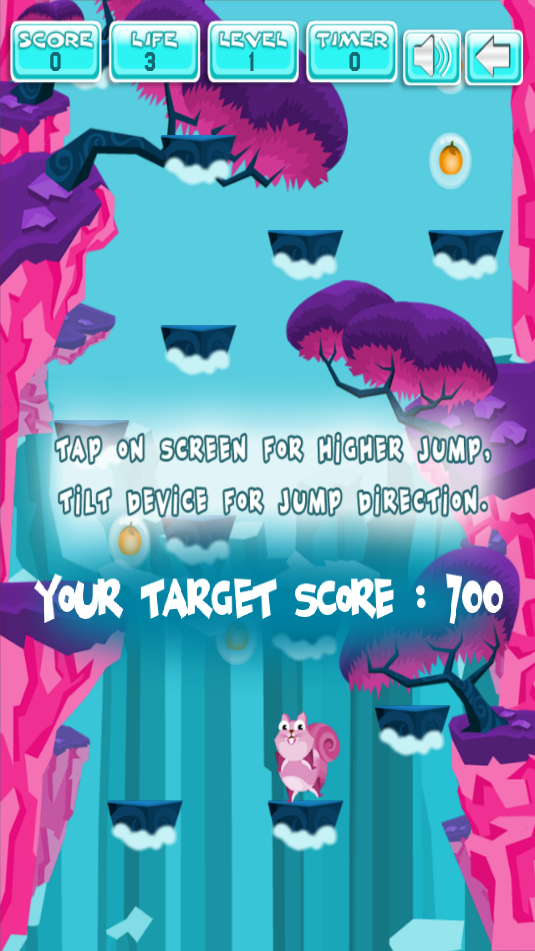 3、游戏里,需靠手机的重力系统来控制松鼠的跳跃,吃到坚果并一层一层往上跳跃到达终点。