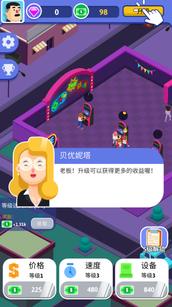 1、优先解锁基础设备:初期选择格斗机、抓娃娃机等热门机型,放置在黄金位置快速吸引首批顾客。