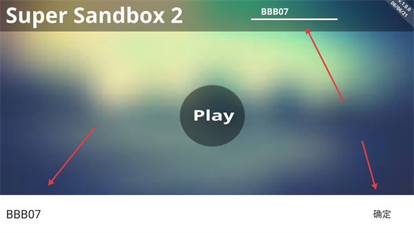 1、进入游戏界面点击Play,输入标识BBB07后点击确定,即可进入像素沙盒世界,开启自由创造与探索的旅程。