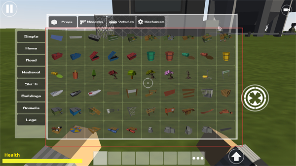 3、打开道具菜单,可选择Simple、Home等分类下的各类道具,如方块、植物、车辆等,挑选心仪道具进行沙盒建造。