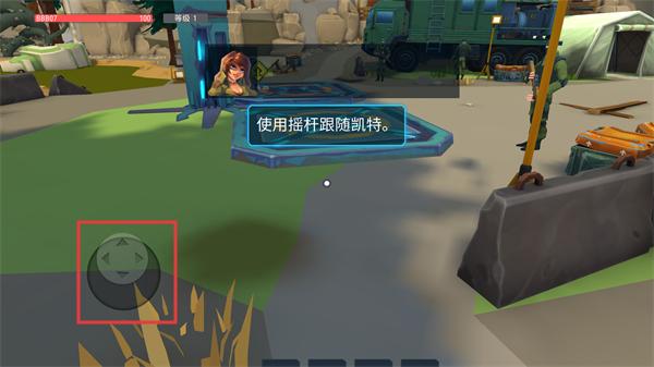 4、游戏内通过左下角摇杆控制角色移动,跟随凯特时操作摇杆前进,在开放地图中利用摇杆探索不同区域,收集生存所需物资。