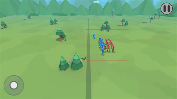 3、布置好兵力后进入战场,蓝红双方的兵种在场地中展开对战,可操控视角观察战斗进程,见证不同兵种的协同作战,推进这场战争的实际战局。