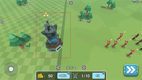 2、在部署时可建造防御塔,塔上士兵能远程攻击,提升己方防御与远程打击能力,为战斗增加优势。