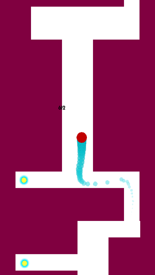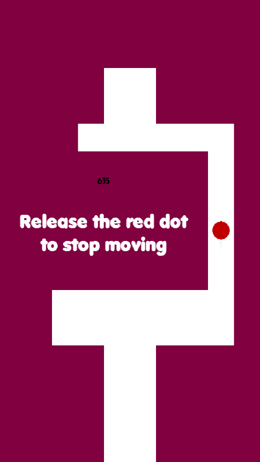 1、游戏中,点击按住这个球会向上移动,小球需根据白色通道行走,松开这个球可以暂停移动。