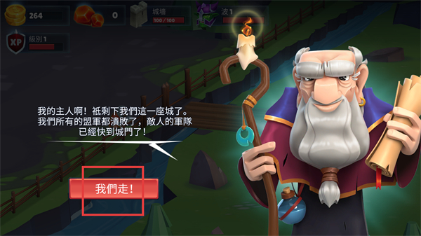 2、进入剧情界面看到老者的提示,知晓城堡处境危急,点击我們走按钮,推进剧情进入战斗准备环节。