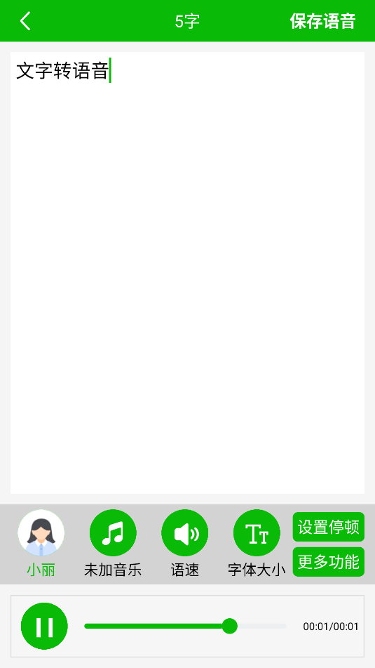 3、支持将文字内容转化为音频文件保存,可随时调取播放,满足离线收听与重复使用需求。
