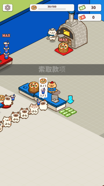 4、自定义店铺装修,可更换桌椅、墙纸与装饰,打造风格独特的个性化猫咪披萨店。