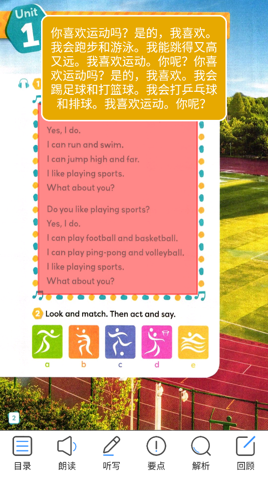 1、该页面中,可选择,单词巩固、口语增强、同步点读等选项进入学习。