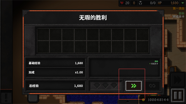 4、查看无瑕的胜利结算界面,获取对应的基础经验奖励,点击按钮进入下一个流程。