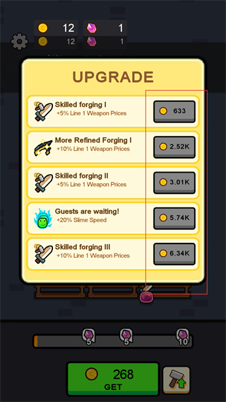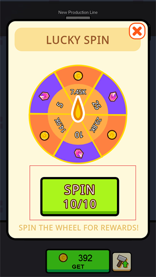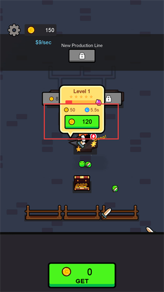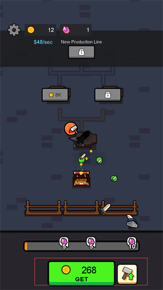 2、点击界面下方的GET按钮,领取当前积累的资源,这些资源可用于后续的生产线升级或武器锻造。