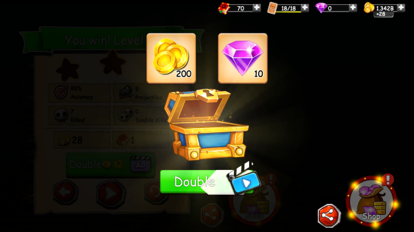 2、多样武器策略搭配,除常规石块炮弹外,还可解锁魔法贝壳、炸弹等特殊道具,应对不同敌人类型。