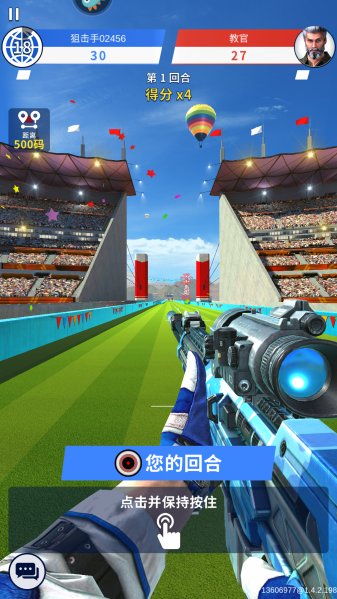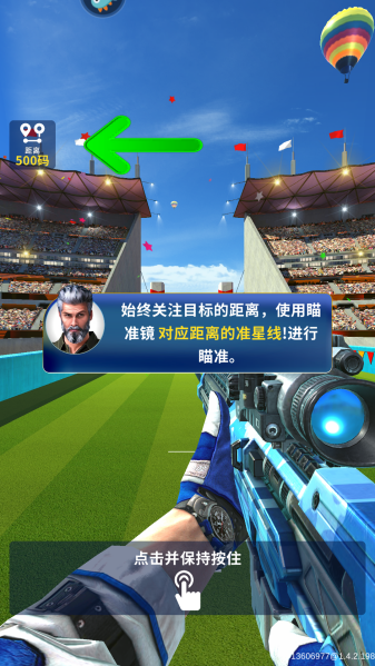 1、基础操作掌握:点击屏幕开启瞄准镜,拖动调整准星对准目标,综合左上角风速、距离提示预判弹道后点击射击。