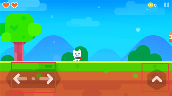 3、操控左侧方向按钮控制幻影猫左右移动,点击右侧跳跃按钮让角色跃起,避开障碍推进关卡。