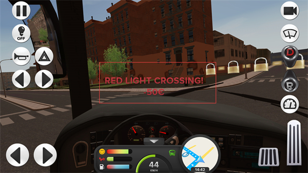 4、行驶至路口时注意交通信号灯,若闯红灯会触发RED LIGHT CROSSING提示并扣除金币。