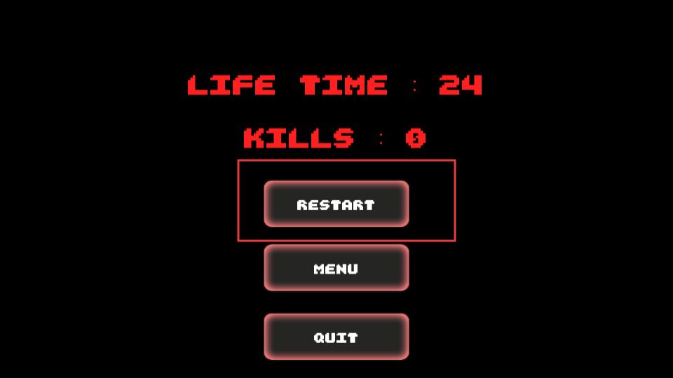 4、若冒险失败,会出现显示LIFE TIME、KILLS的界面,有RESTART、MENU、QUIT选项,点击RESTART可重新开始,继续噩梦挑战。