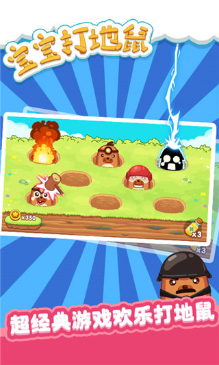 《宝宝打地鼠》是一款面向低龄群体的休闲益智手游。采用萌系卡通画风,场景含花园、农场、森林等,地鼠形象圆润可爱,搭配鲜艳色彩。核心玩法为击打冒出的地鼠,点击屏幕命中目标,避开炸弹等干扰元素,累计得分解锁新场景与道具,感受轻松有趣的击打乐趣。