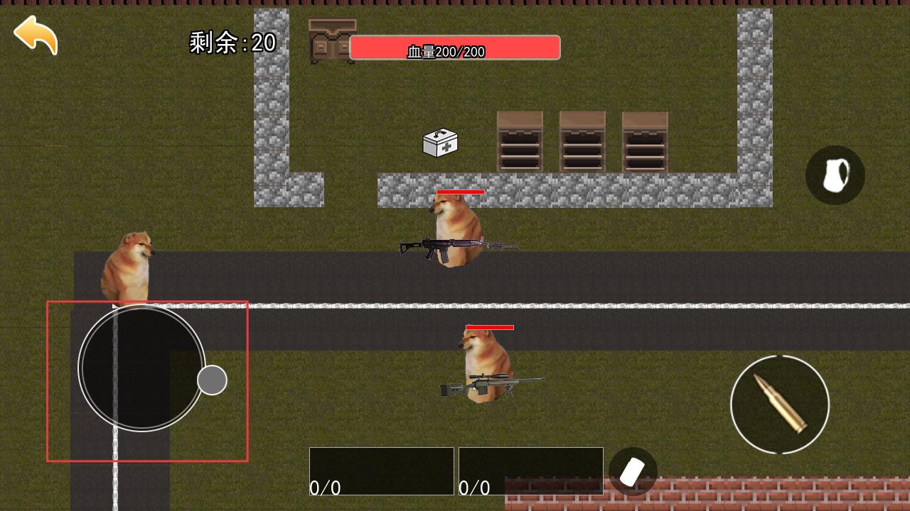 2、在战场里通过左侧的虚拟摇杆操控角色移动,右侧的子弹按钮可进行射击,与敌人周旋。