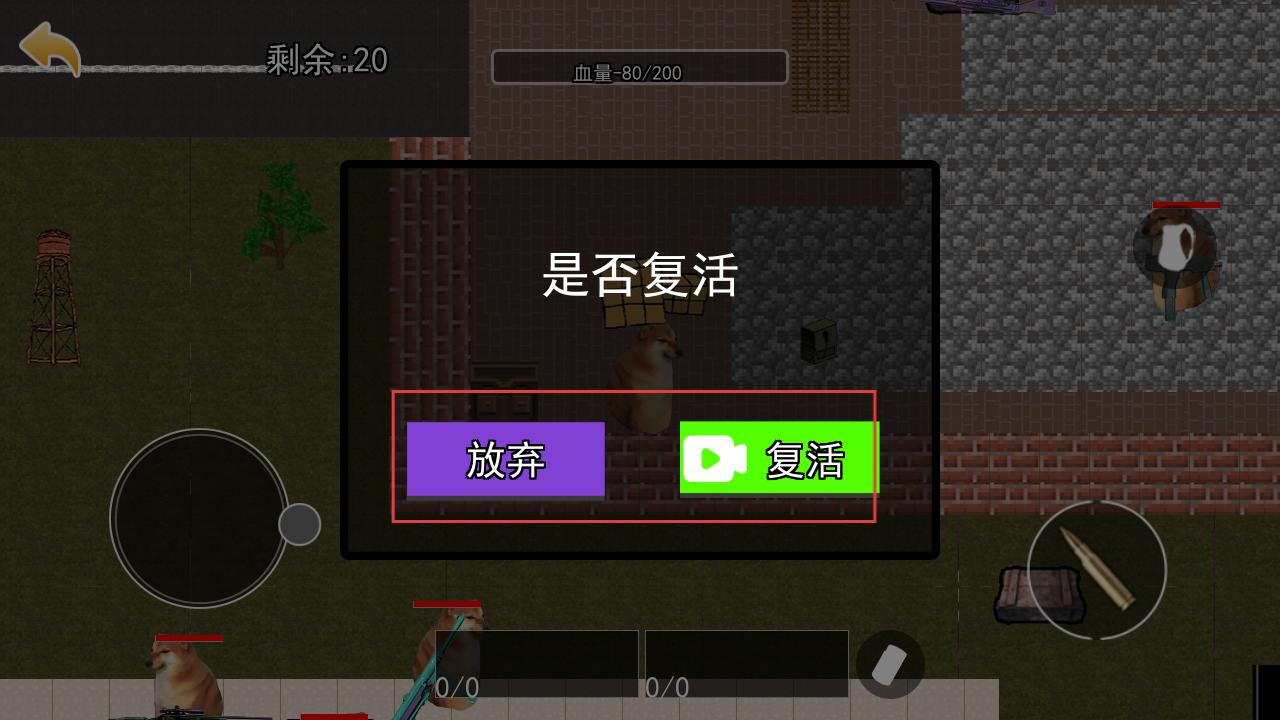 4、若角色血量耗尽,会弹出是否复活的提示框,可选择放弃或复活,继续参与战场突围。